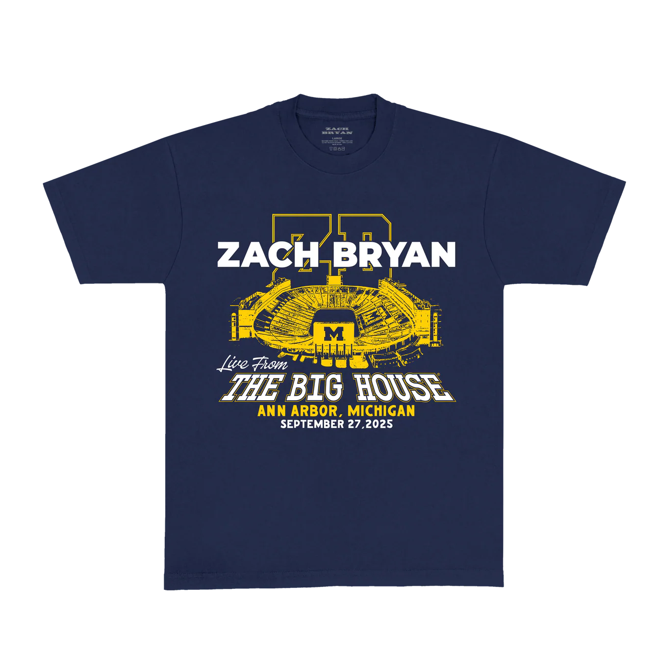 ZB Big House Tee – Navy | Zach Bryan x University of Michigan Show Collection